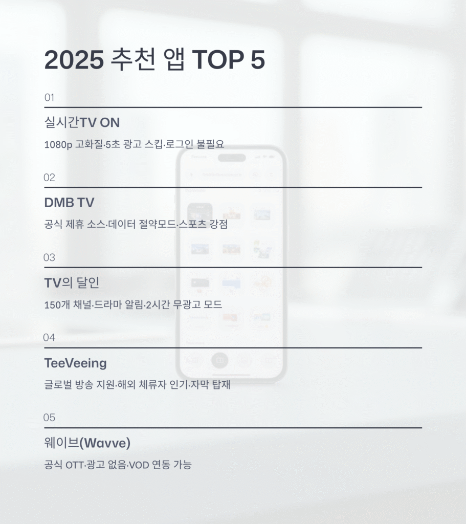 - 2025 실시간TV 앱 추천 TOP 5